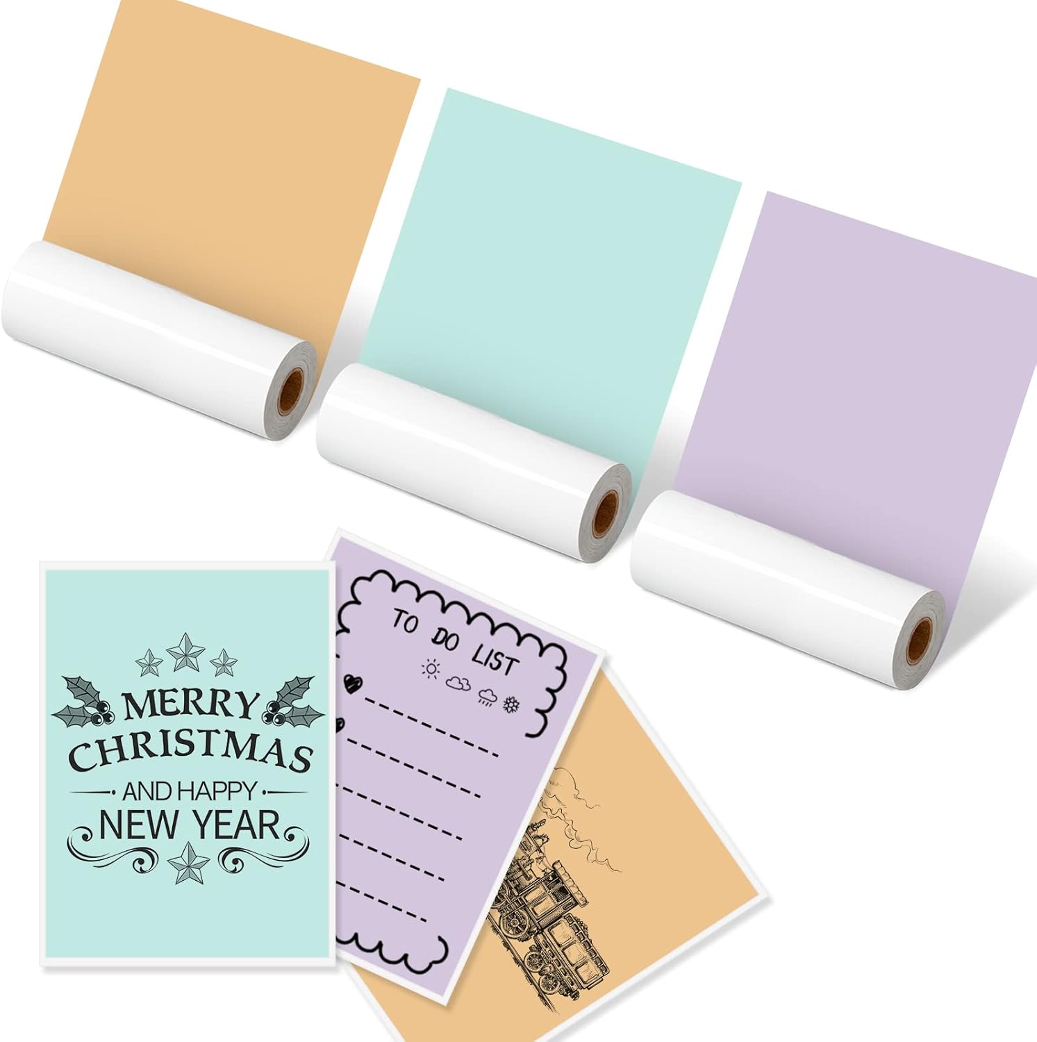 Phomemo Adhesive Thermal Sticker Paper for Phomemo M03/M03AS/M04S/M04AS Wireless Pocket Printer, Black on Green/Purple/Orange, 77mm Width X 3.5m Length, 3 Rolls, Stored for 20 Years