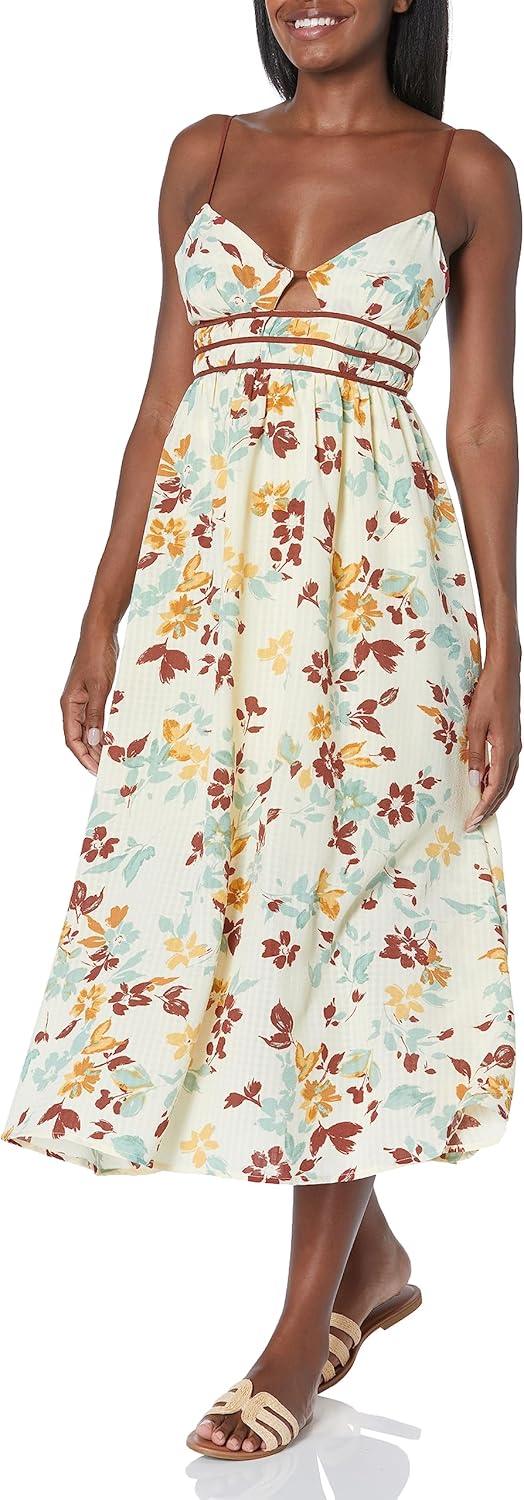 Moon River Womens Floral V Neck Sleeveless Cut-Out Shirred Midi Dress