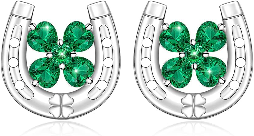 Shamrock Earrings Stud St Patricks Day Earrings for Women Sterling Silver Four Leaf Clover Celtic Good Lucky Irish Gifts
