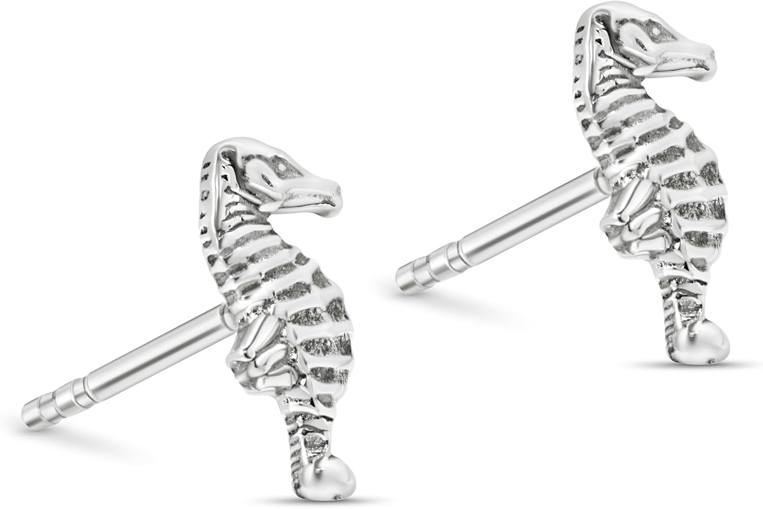 925 Sterling Silver Seahorse Stud Earrings - Dainty Seahorse Studs, Tiny Handmade Jewelry, Pushback Closure Earrings, Simple Minimalist Fashionable Gift for Young Women