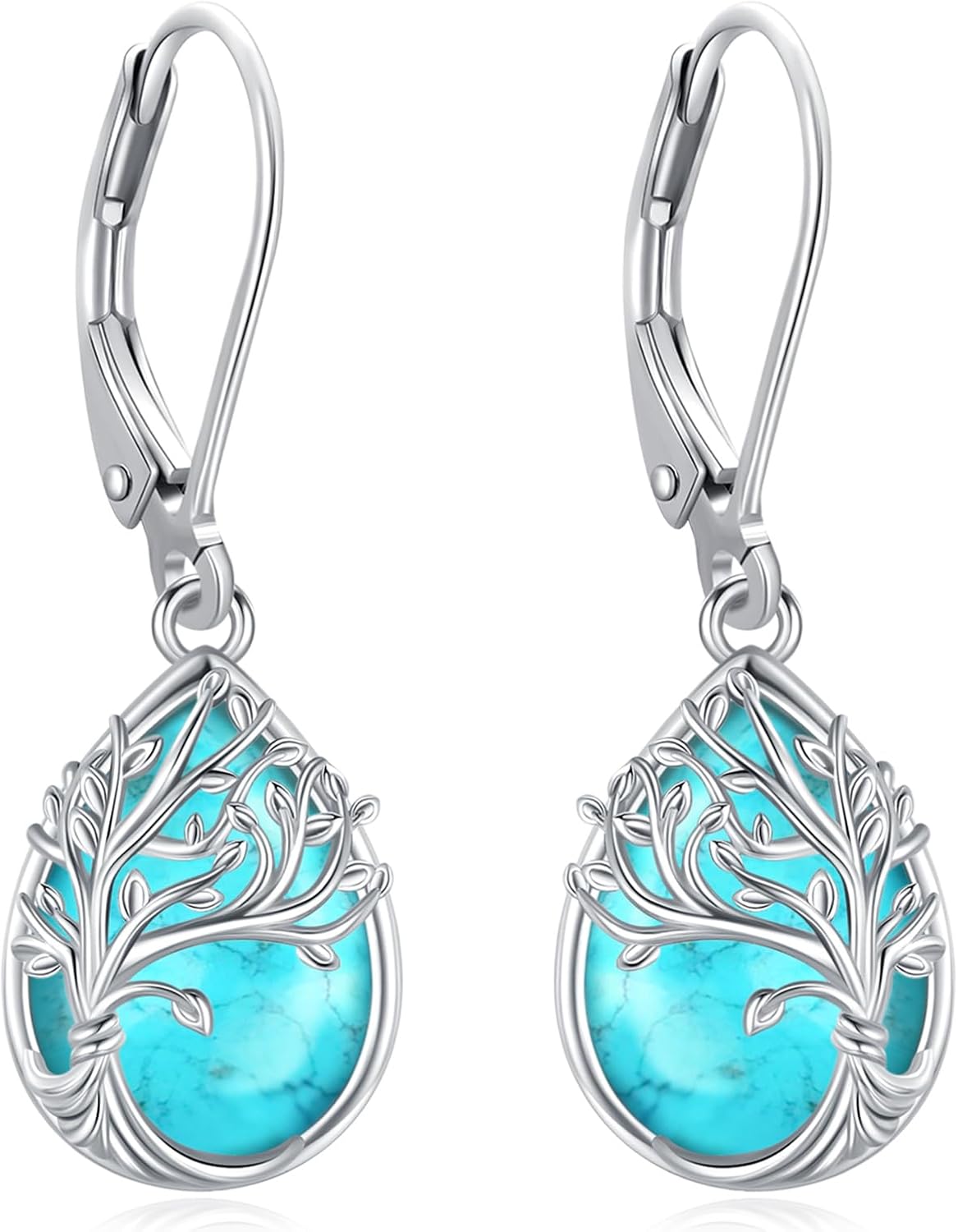 Tree of Life/Cat/Turtle/Butterfly/Flower/Celtic/Turquoise/Moonstone Dangle Earrings for Women Sterling Silver Cute Animals Drop Earrings Jewelry Gifts