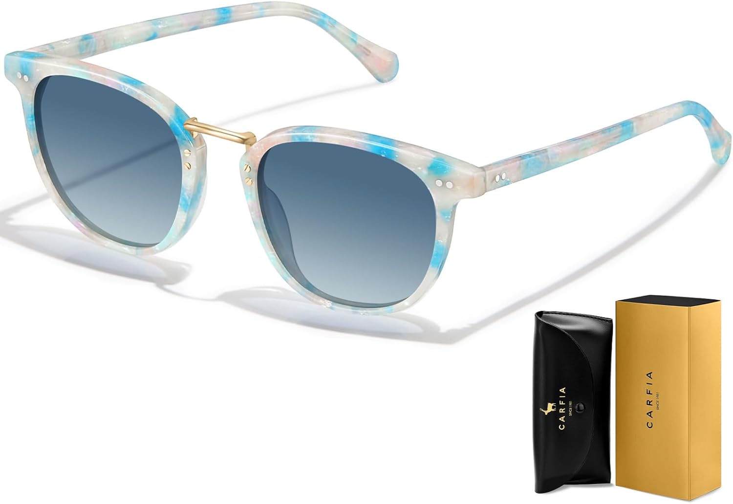 CARFIA Acetate Polarized Sunglasses for Women UV Protection, Retro Eyewears Metal Bridge Brow Ladies Sunnies Trendy Shades
