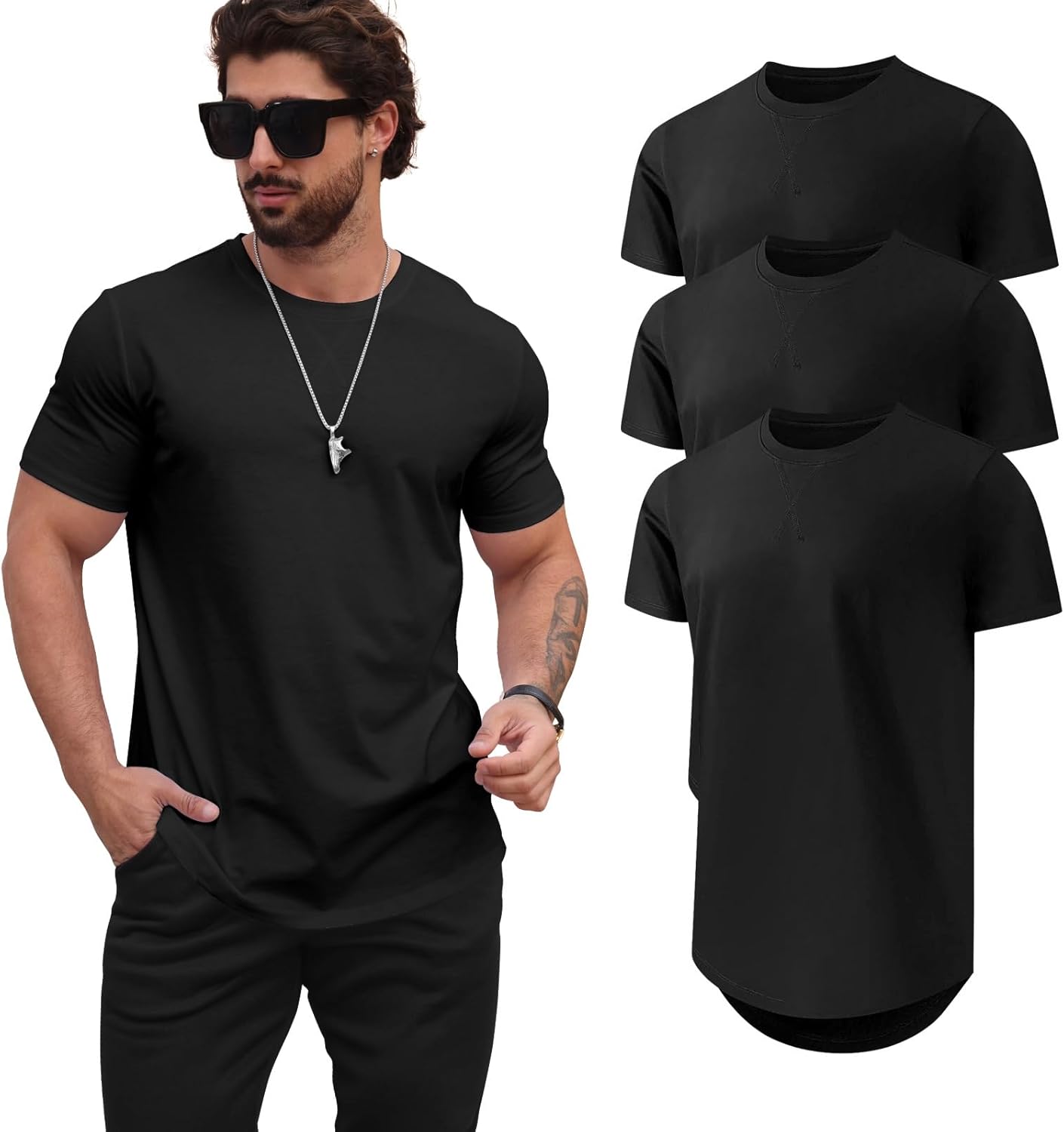 3 Pack Premium Men's Fitted Crew Neck Plain Essential Tees Short Sleeve Big Tall T-Shirts,Oversized T Shirts for Men 4X-Large