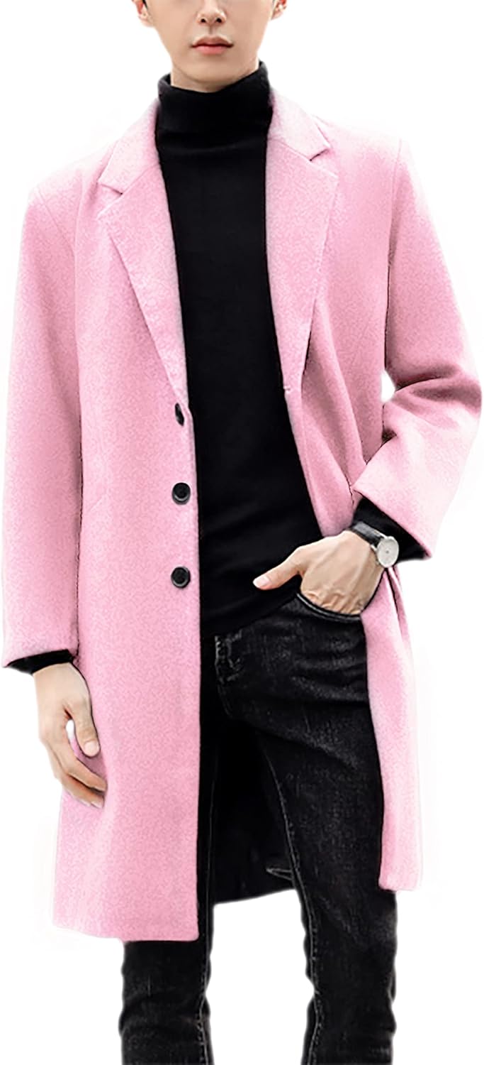UANEO Mens Wool Blend Trench Coat Notch Lapel Camel Peacoats Winter Overcoat