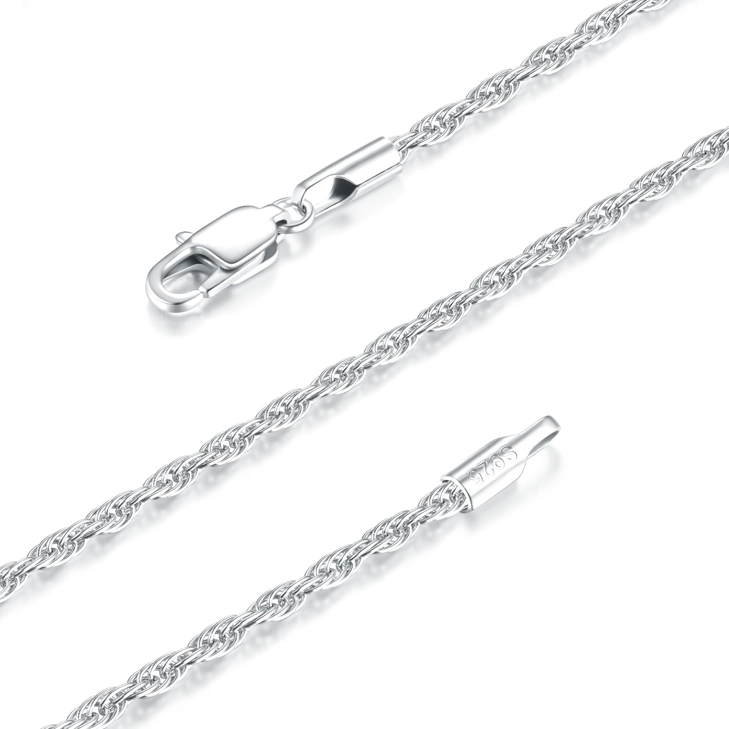 925 Sterling Silver Chain Necklace for Women, 18K Gold Plated Chain for Women, 1.5/2.5MM Rope Chain Sturdy & Non Tarnish Women's Chain Necklaces Jewelry Gifts