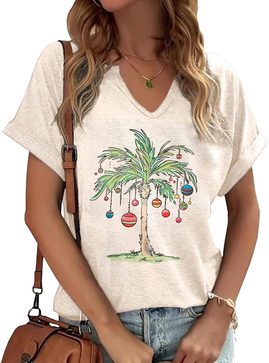 Christmas V Neck Shirts for Women Xmas Buffalo Plaid Tree Shirt Merry and Bright Shirt Casual Graphic T Shirt Tops