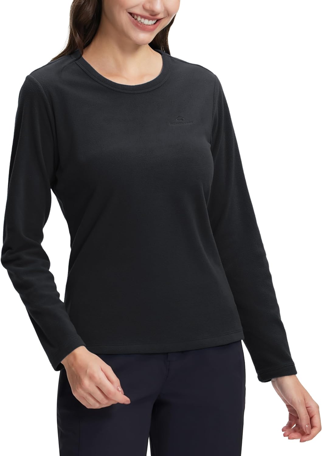 Pioneer Camp Women's Fleece Shirts Long Sleeve Base Layer Running Shirt, Thermal Top Crew Neck Base Layer for Winter