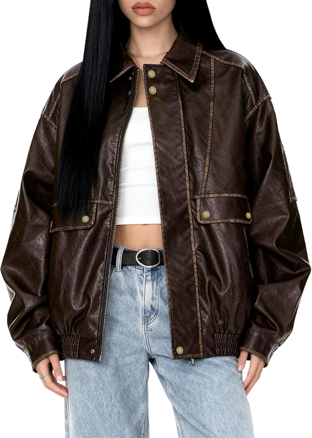 Bakyarder Womens Oversized Y2K Faux Leather Jackets Vintage Plus Size Fashion Motorcycle Coats Fall Fashion Outfits 2025