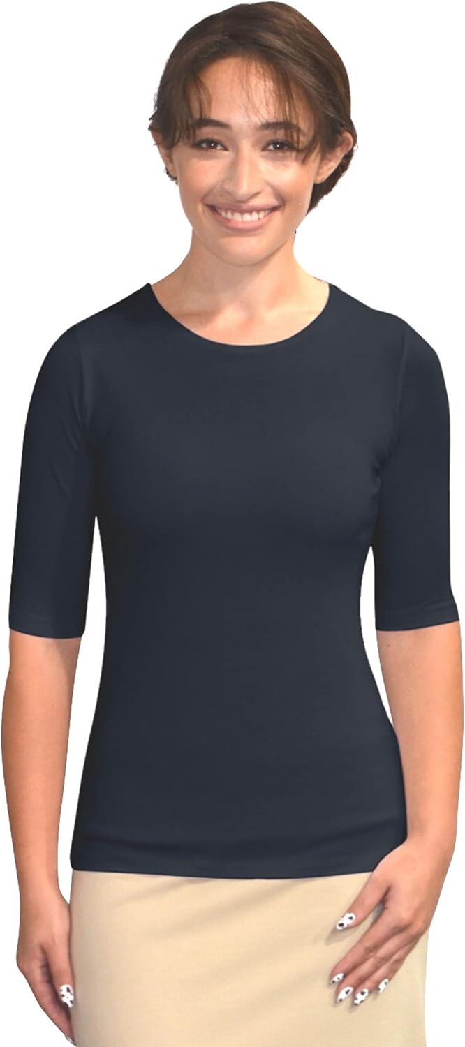 Kosher Casual Women's Modest Boat Neck Fitted Layering Top with Elbow Length Sleeves