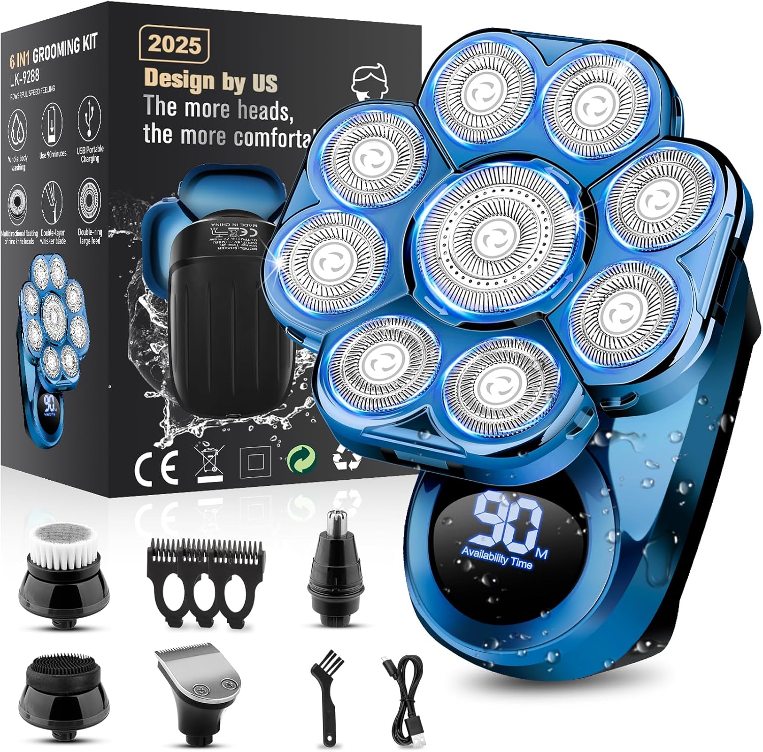 - 【6-in-1 Grooming Kit】Electric shavers for men includes 6 detachable Accessories, Head/Beard Shaver, Nose/Ear Hair Trimmer, Hair Trimmer(3/5/7mm), Facial Massage Brush, Facial Cleaning Brush, Body Trimmer. Professional 6 in 1 Multifunctional electric shavers, Different types of head razor shaver accessories meet all your personal facial shaving needs for beard and hair. Great for husband, partner, father, friends and brothers