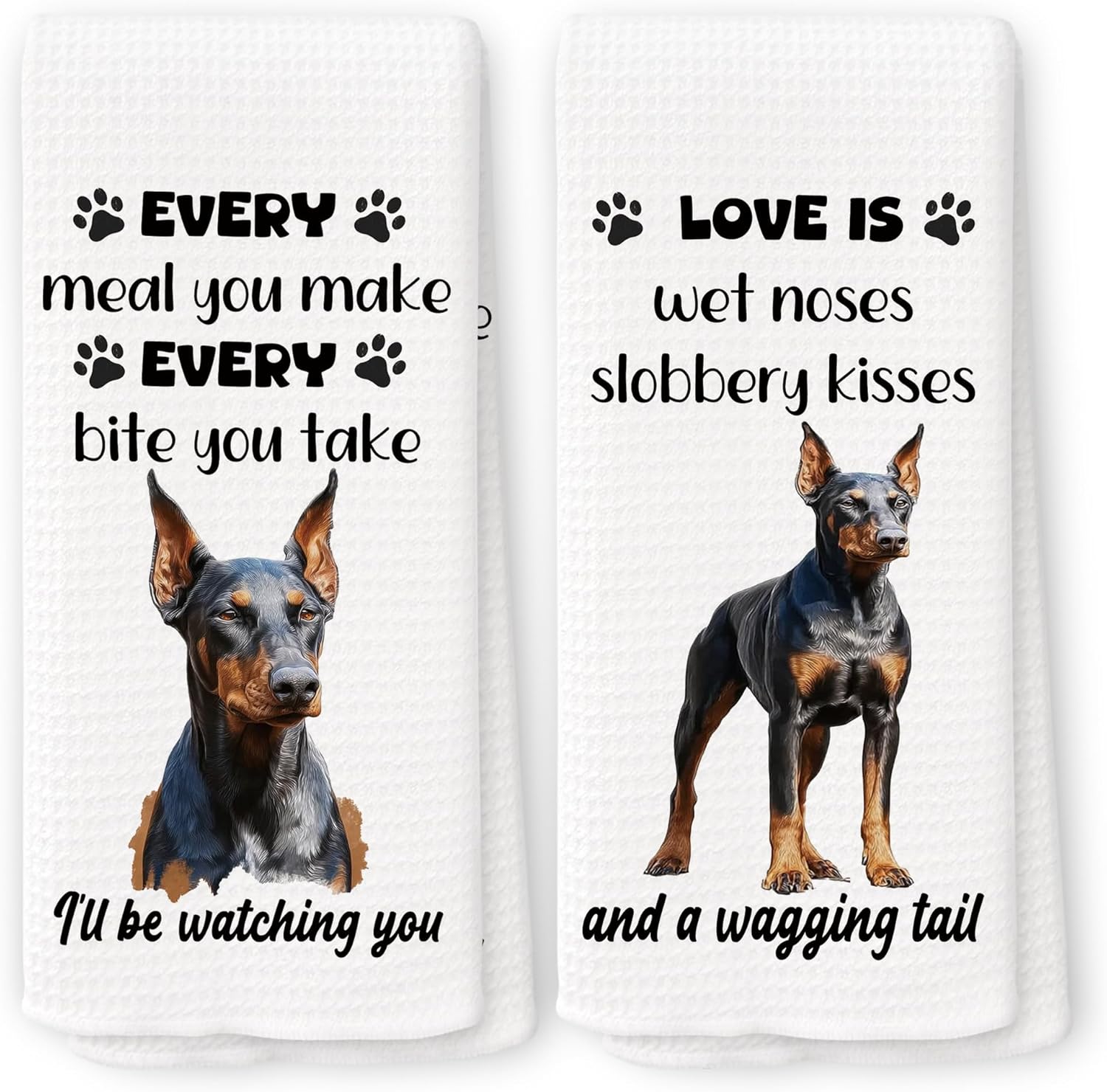 Funny Doberman Kitchen Towels, Doberman Gifts for Women Dish Tea Towels for Kitchen, Dog Mom Dad Lovers Owner Gifts Decorative Hand Towel 16x24 Inch Set of 2