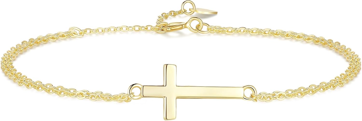 GAVU Double Chains 925 Sterling Silver Cross Bracelet for Women, Dainty Cross Charm Confirmation Bracelet