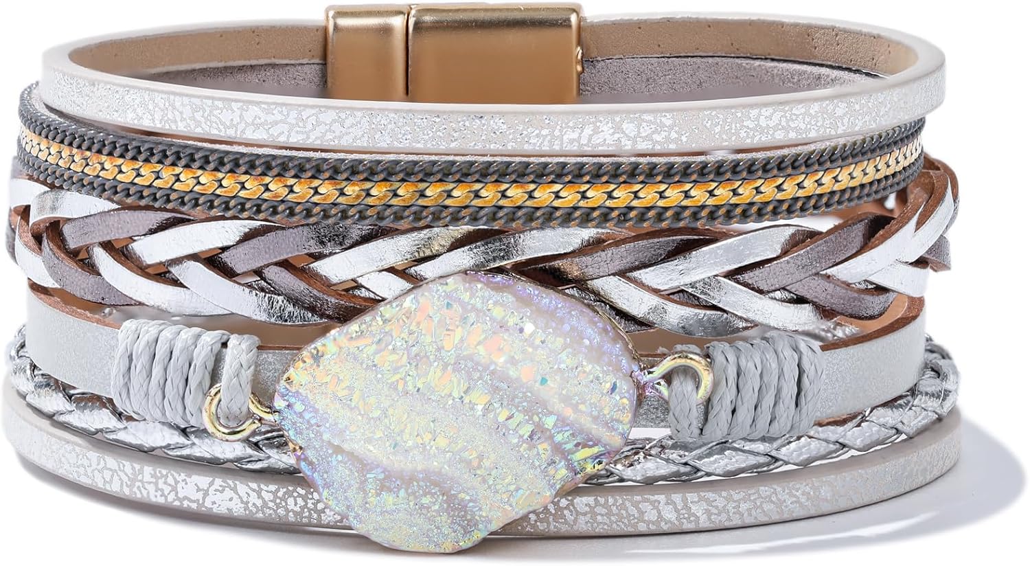 FANCY SHINY Braided Leather Bangle Bracelets Boho Resin Stone Wrap Bracelets Stackable Cuff Bracelets with Magnetic Clasp for Women