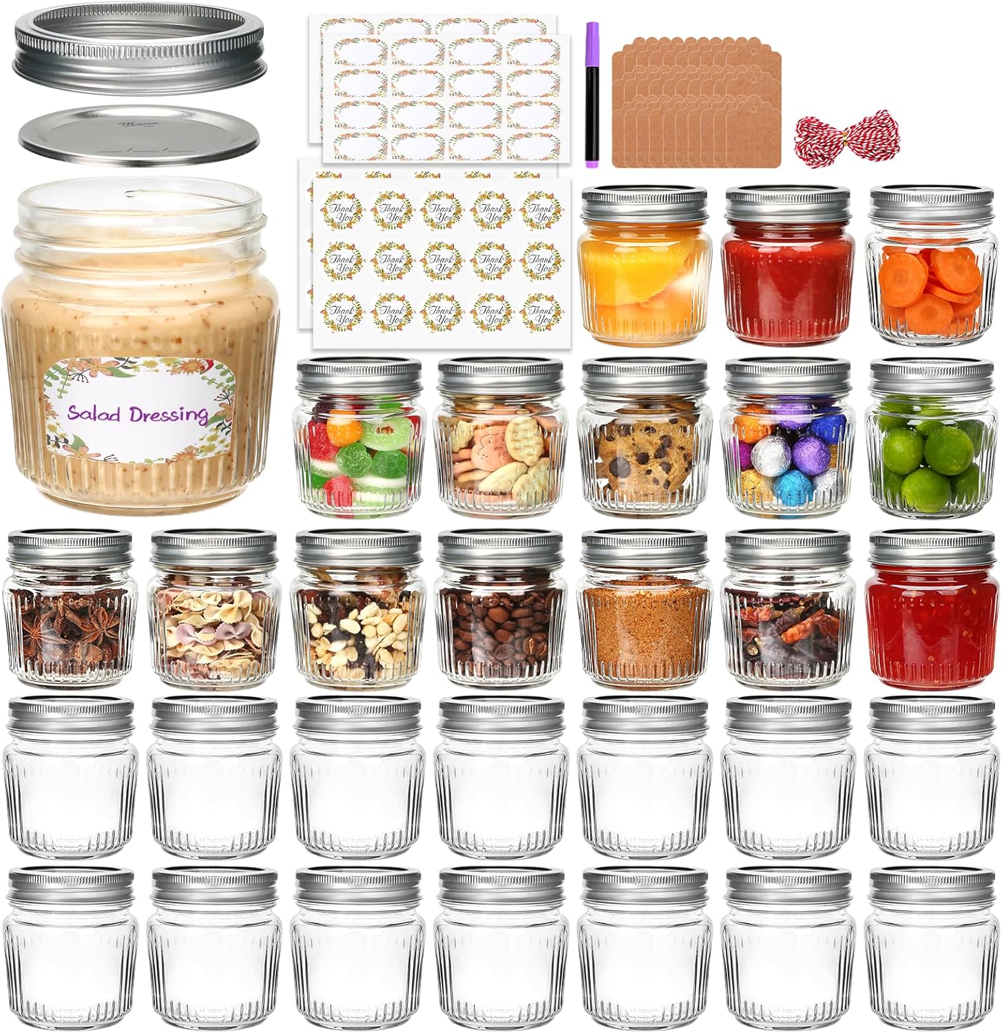 8 oz Mason Jars with Lids,30 Pcs Small Glass Jars with Lids,Stylish Striped Design Canning Jar for Food Freshness, Multipurpose for Jam, Candy, DIY, Honey, Pickles, Spice,Home Storage and Gifting