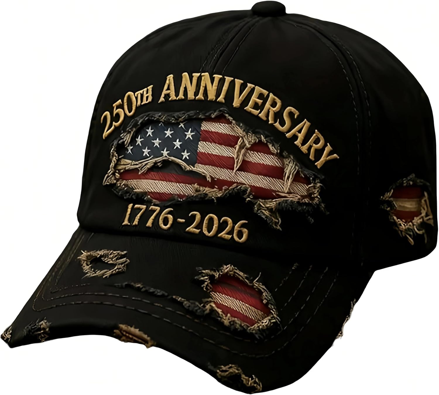 250th US Anniversary Distressed Denim Hat – 1776–2026 Embroidered Patriotic Baseball Cap, Adjustable Metal Buckle