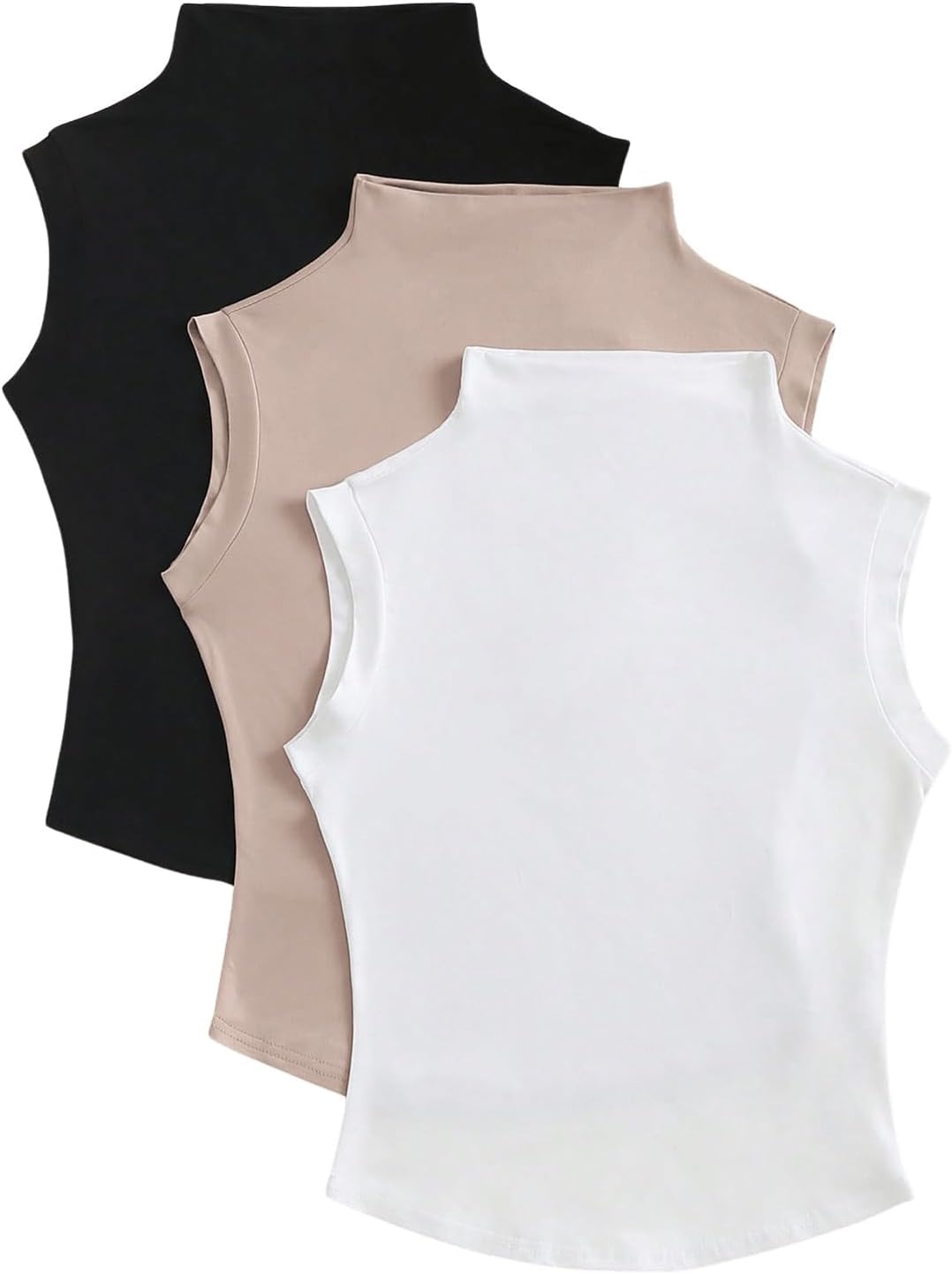 SweatyRocks Women's 3 Pack Tank Tops Mock Neck Fitted Sleeveless Summer Tops