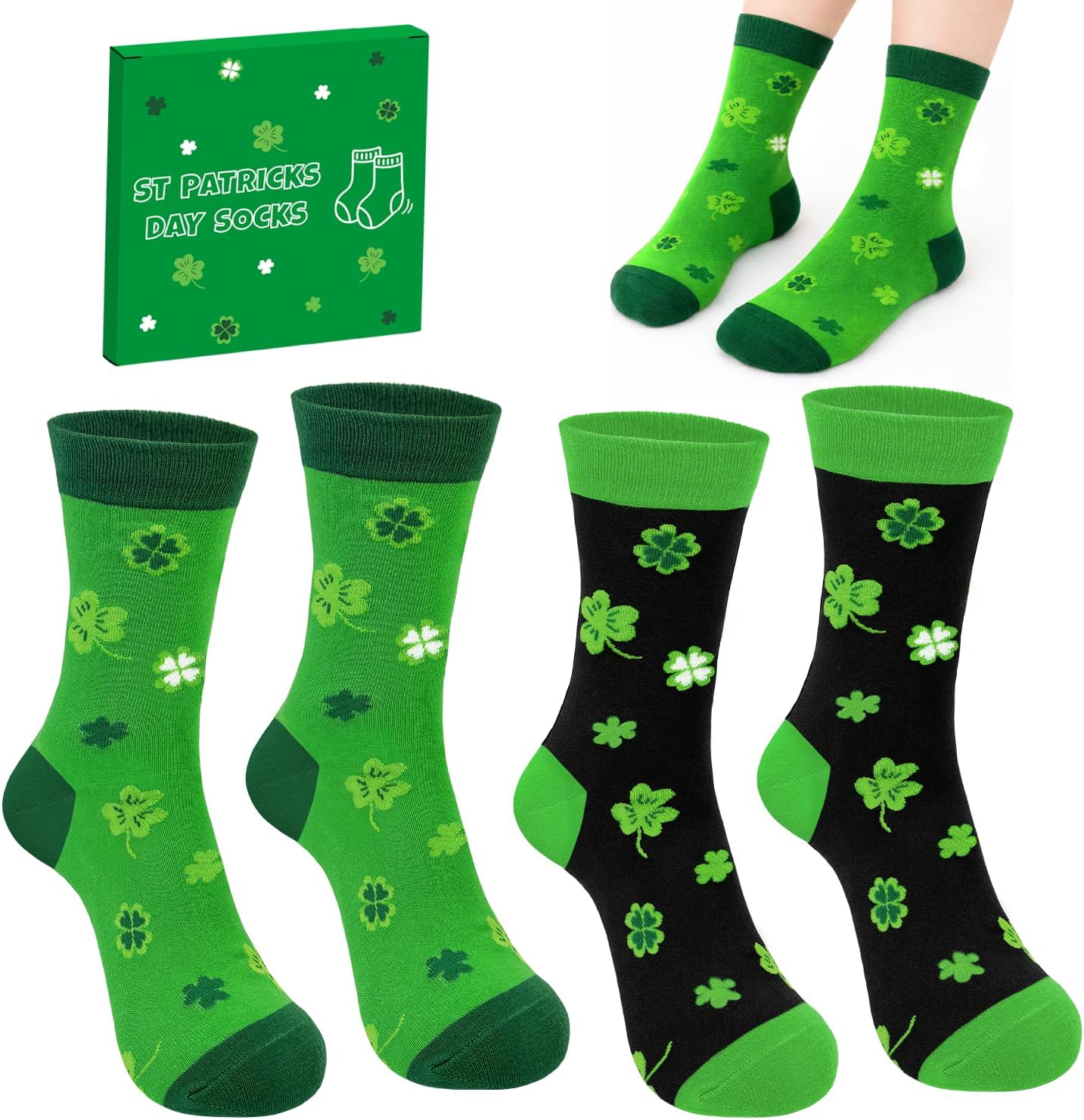 St Patricks Day Socks for Women Men, 2 Pairs Shamrock Irish Socks, Green Saint Patricks Day Outfit Accessories, St Patrick's Day Gifts For Adults Coworkers Teachers Friends