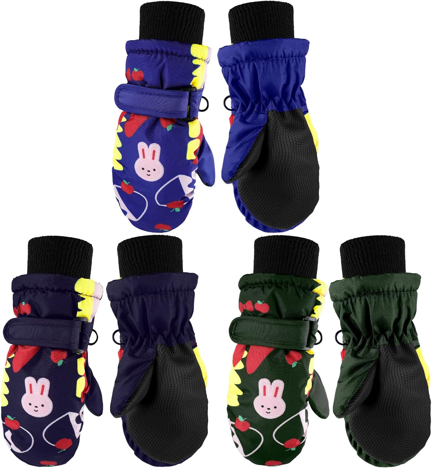 3 Pairs Winter Kids Mittens Snow Gloves Thick Ski Mittens Warm Waterproof Windproof Mittens for Skiing Riding