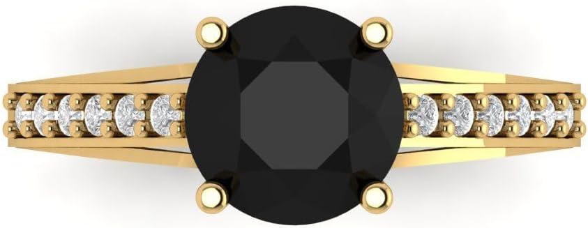 Clara Pucci 2.21 cttw Onyx 14K Yellow Gold Solitaire with Accents Ring for Women - Cocktail Statement Fashion Jewelry Gift (8.0mm, Round Cut)