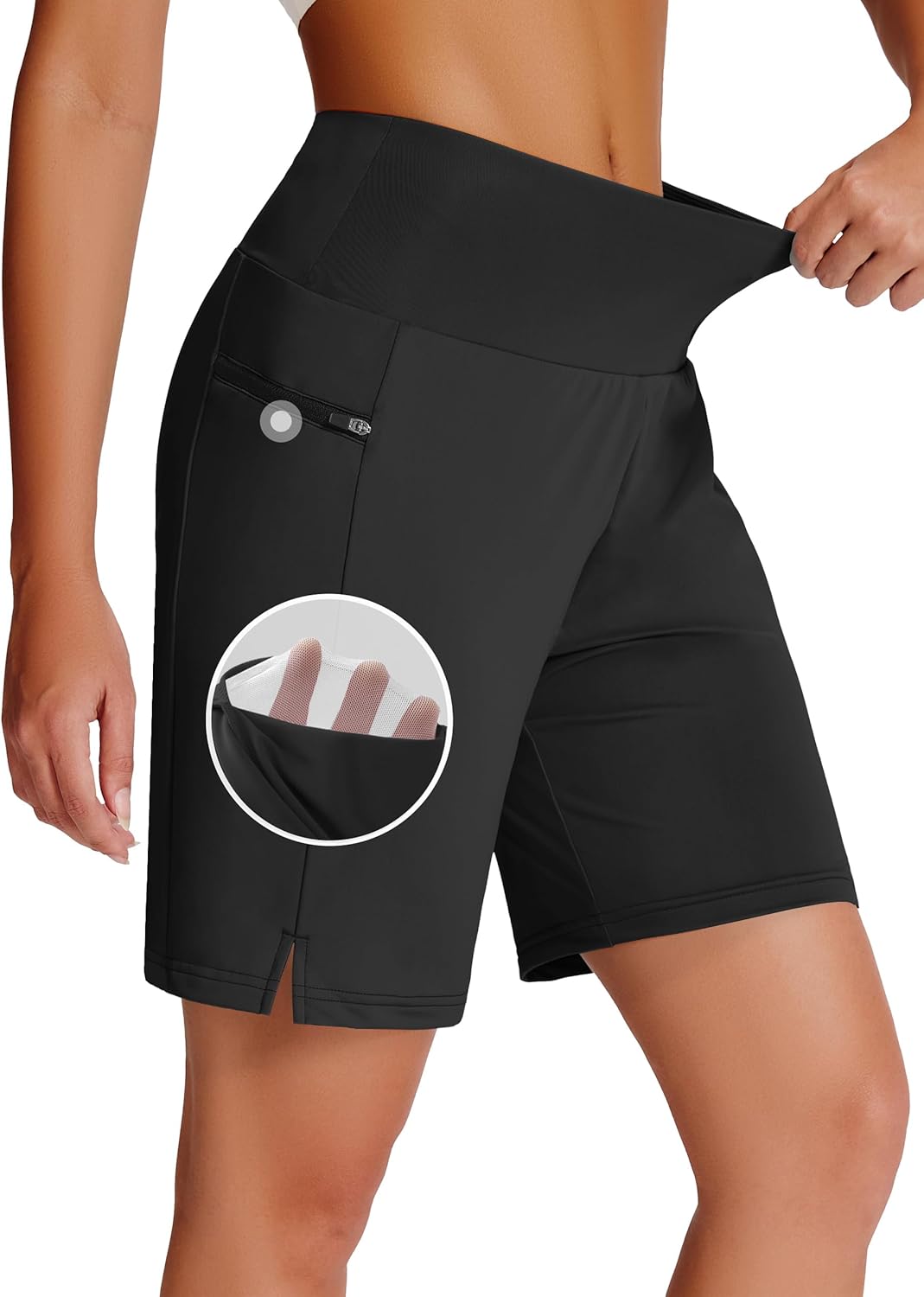Womens 5" 7" 9" Swim Board Shorts with Zipper Pockets High Waisted Quick Dry Beach Bermuda Long Swimming Trunks UPF 50+