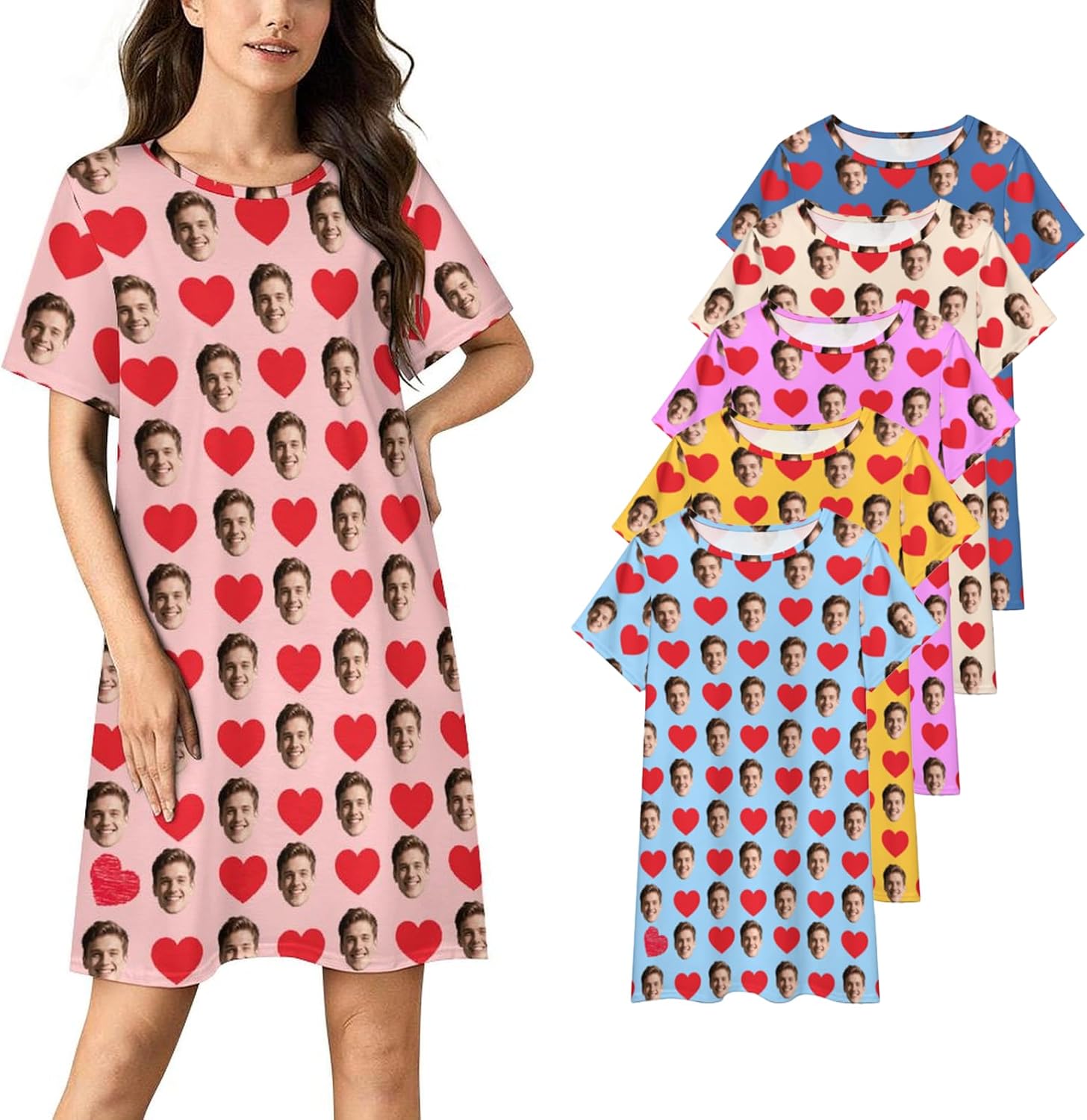 Personalized Funny Moo Moos for Women Nightgowns Custom Face Nightgown Personalized Pajamas with Photo