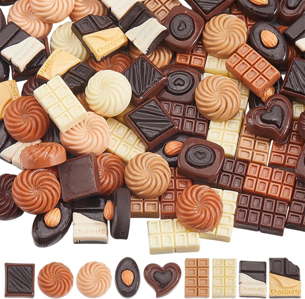 100Pcs 3 Styles Chocolate Resin Charms Flatback Cabochon Charms Flat Back Assorted Colorful Cookie Candy Kawaii Embellishments Accessories for Jewelry Nail Hair Clips Phone Cases DIY Crafts