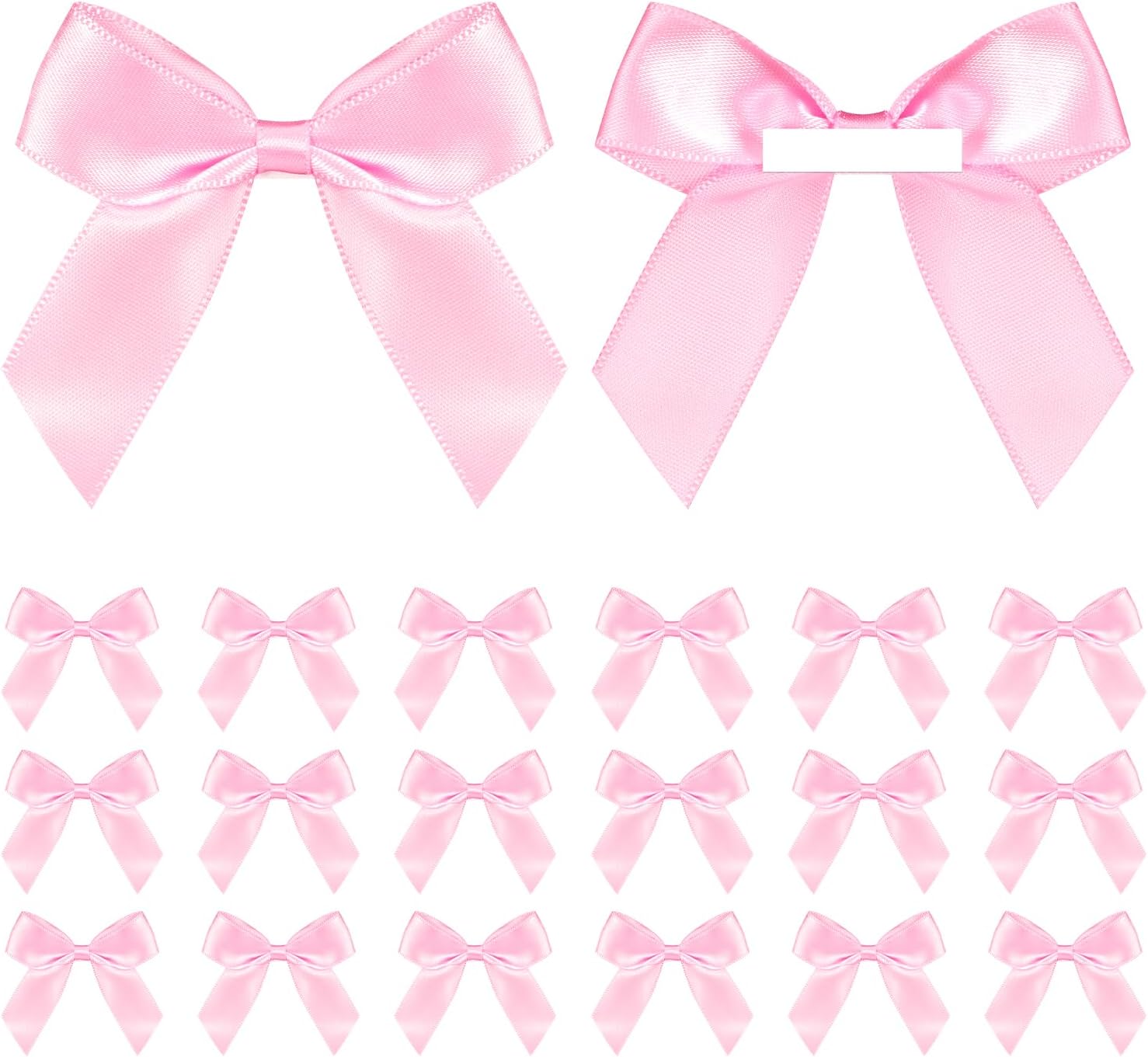 - 【 Package Content 】You will receive 50 pieces of pink satin bows with double-sided tape..Made of High quality satin ribbon,This set will easily meet your various needs for decoration or DIY projects. It also saves time on making the bow yourself.