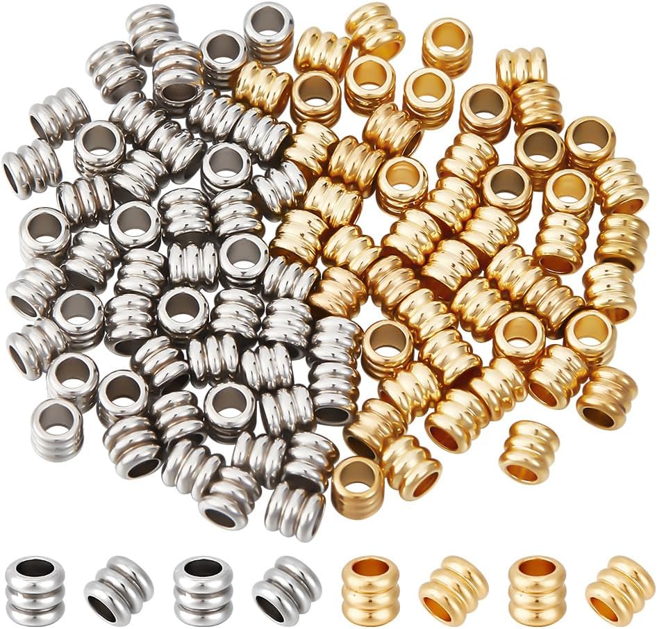 UNICRAFTALE 100Pcs 2 Colors Paracord Bead Stainless Steel Lanyard Beads Grooved Loose Beads 4.5-5mm Diameter Metal Column Beads Jewelry Spacer Bead Hole 3mm for Necklace Bracelet Jewelry Making