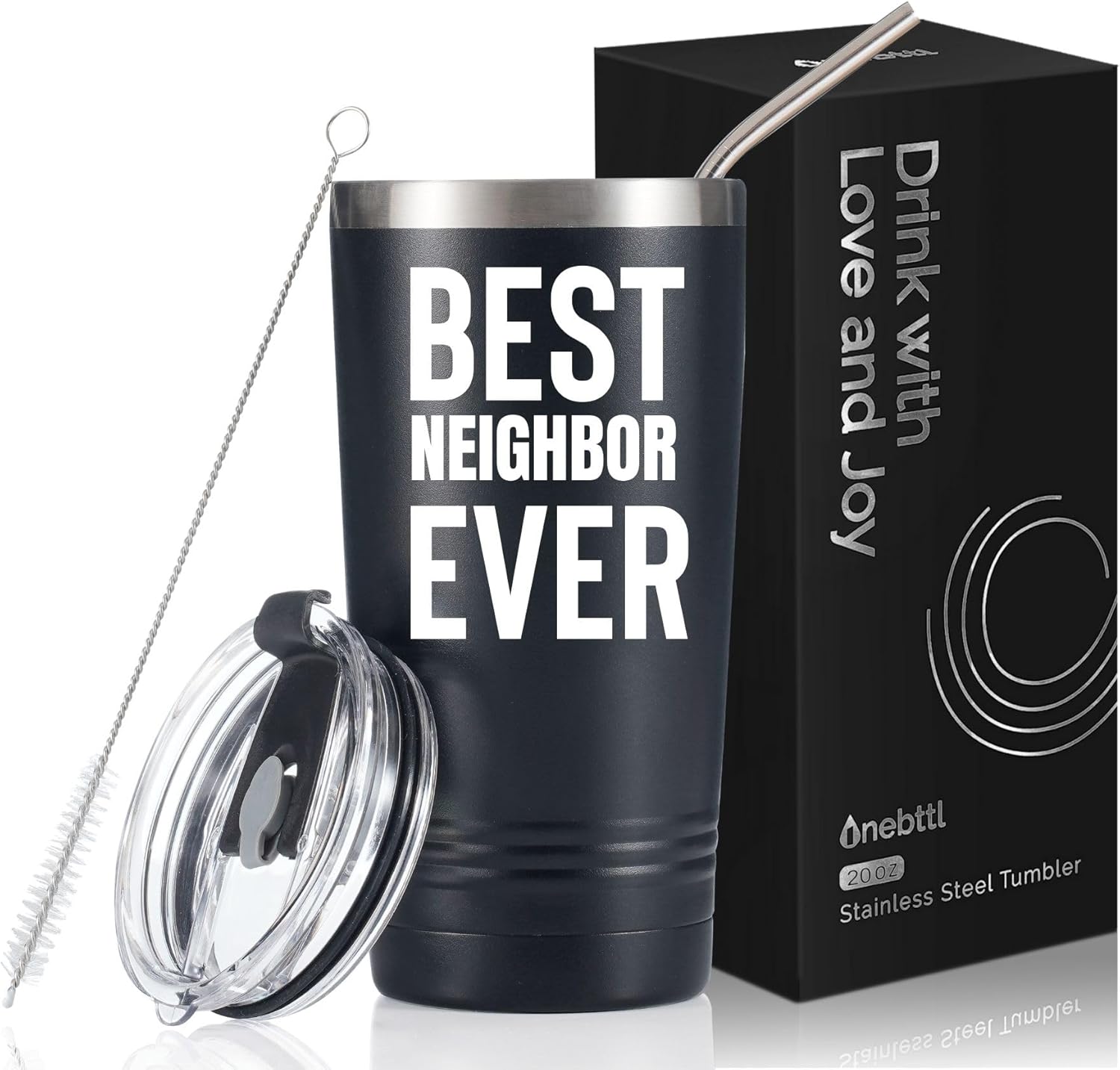 Onebttl Best Neighbor Ever Gifts, for Men, Women, Housewarming Gifts for Neighbor, Stainless Steel Tumbler 20OZ