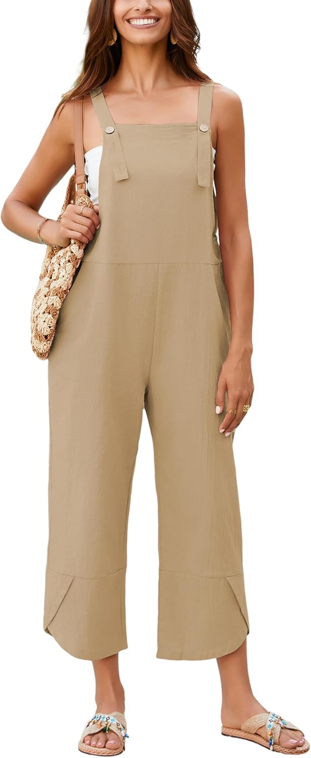 UANEO Womens Cotton Adjustable Casual Summer Bib Overalls Jumpsuits with Pockets
