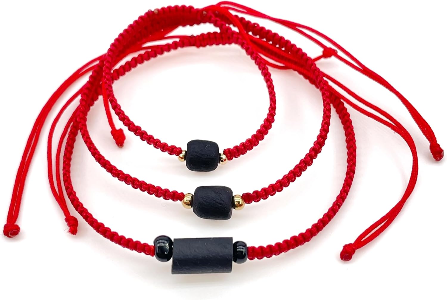 Red String Bracelet for the Family Against Evil Eye Genuine Jet Stone Azabache Para el Mal de Ojo