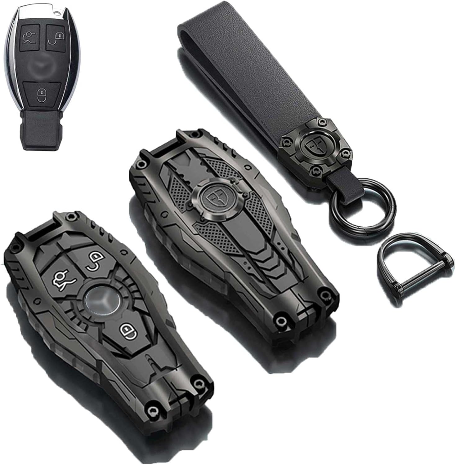 Key Fob Cover for Mercedes Benz with Keychain, Heavy Metal Key Case Protector Compatible with Mercedes Benz C E S M CLS CLK G Class Keyless Smart Key Fob(A Model-Black)