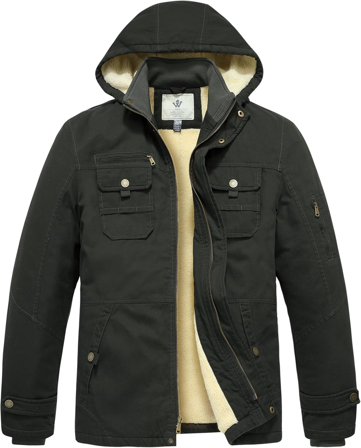WenVen Men's Winter Sherpa Parka Mid Length Thicken Military Style Warm Jacket with Removable Hood