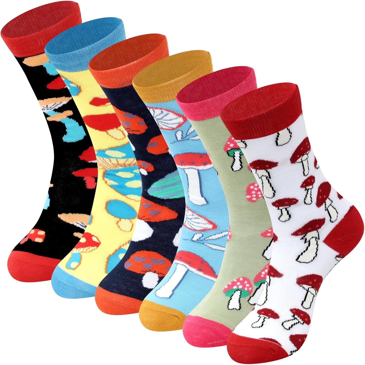 Toulite 6 Pairs Funny Mushroom Socks for Women Novelty Casual Cute Sock Christmas Groovy Gifts for Mushroom Lover