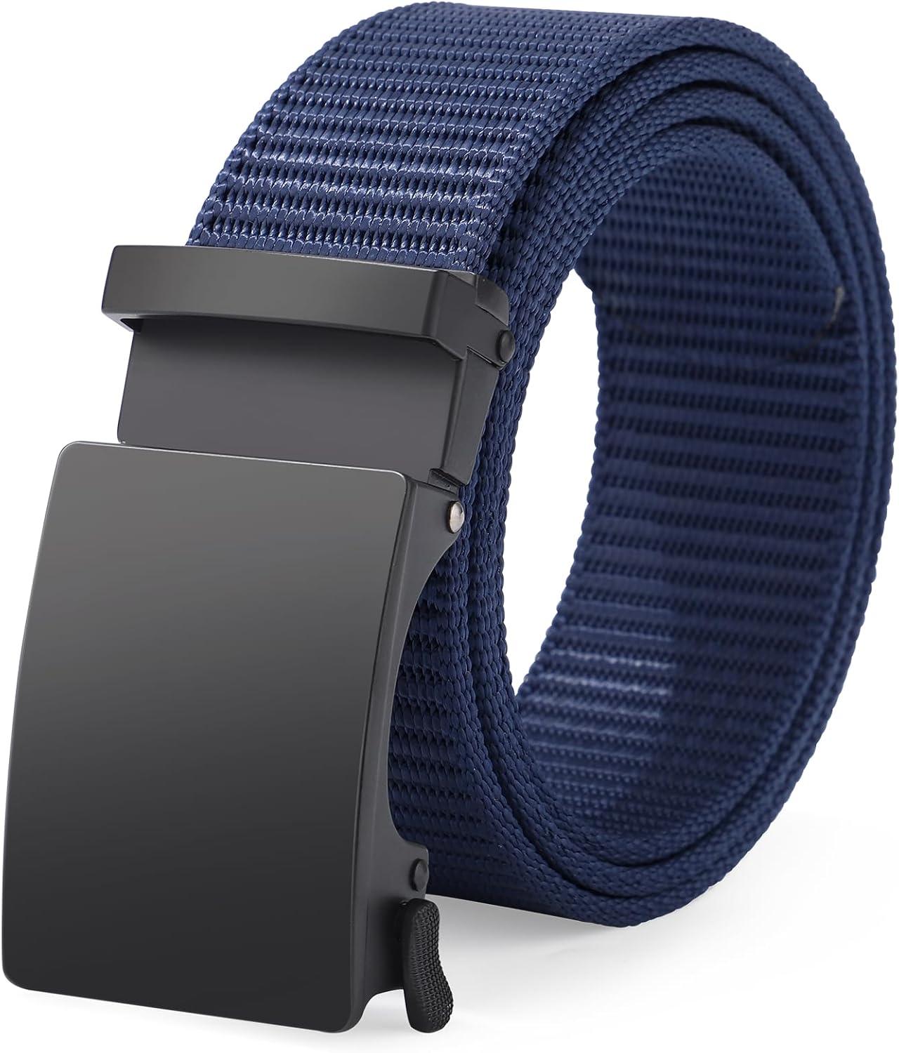 AWAYTR Nylon Ratchet Belts for Men - No Hole Casual Web Golf Belt for Jeans with Slide Buckle