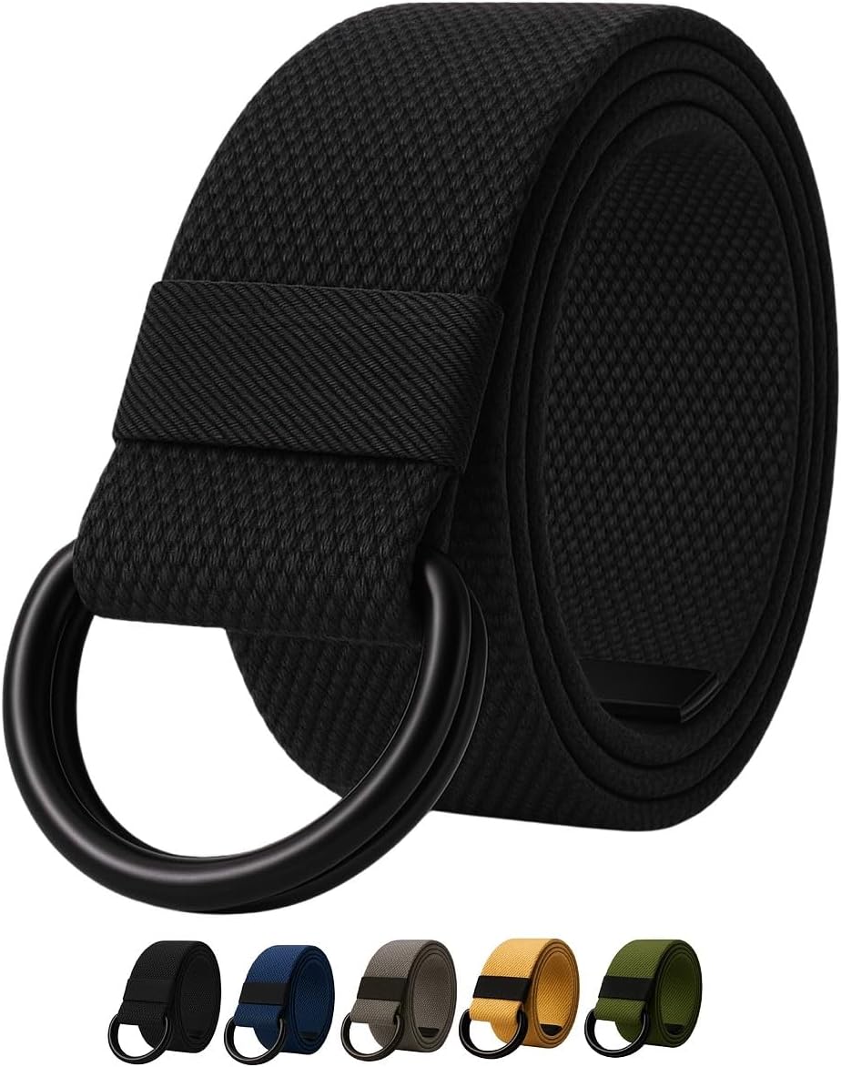 Black D-Ring Web Belt Canvas Belt for Men Women Jeans Belts 1.5'' Wide