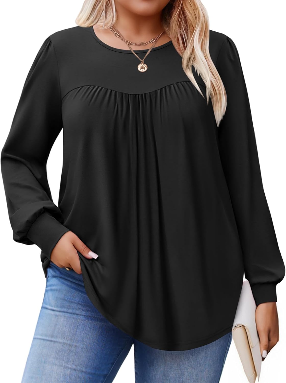 IN'VOLAND Womens Plus Size Tops Long Sleeve Shirts Crew Neck Flowy Tunic Fall Casual Loose Blouse 1X-5X