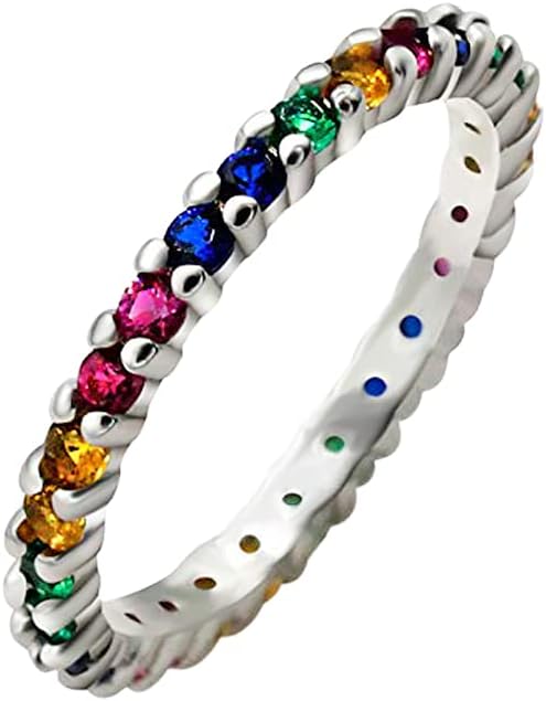 Artever Eternity Rainbow Ring Wedding Band for Women 925 Sterling Silver Cubic Zirconia-Cut Rainbow Multi Color Created-Gemstone Eternity Ring