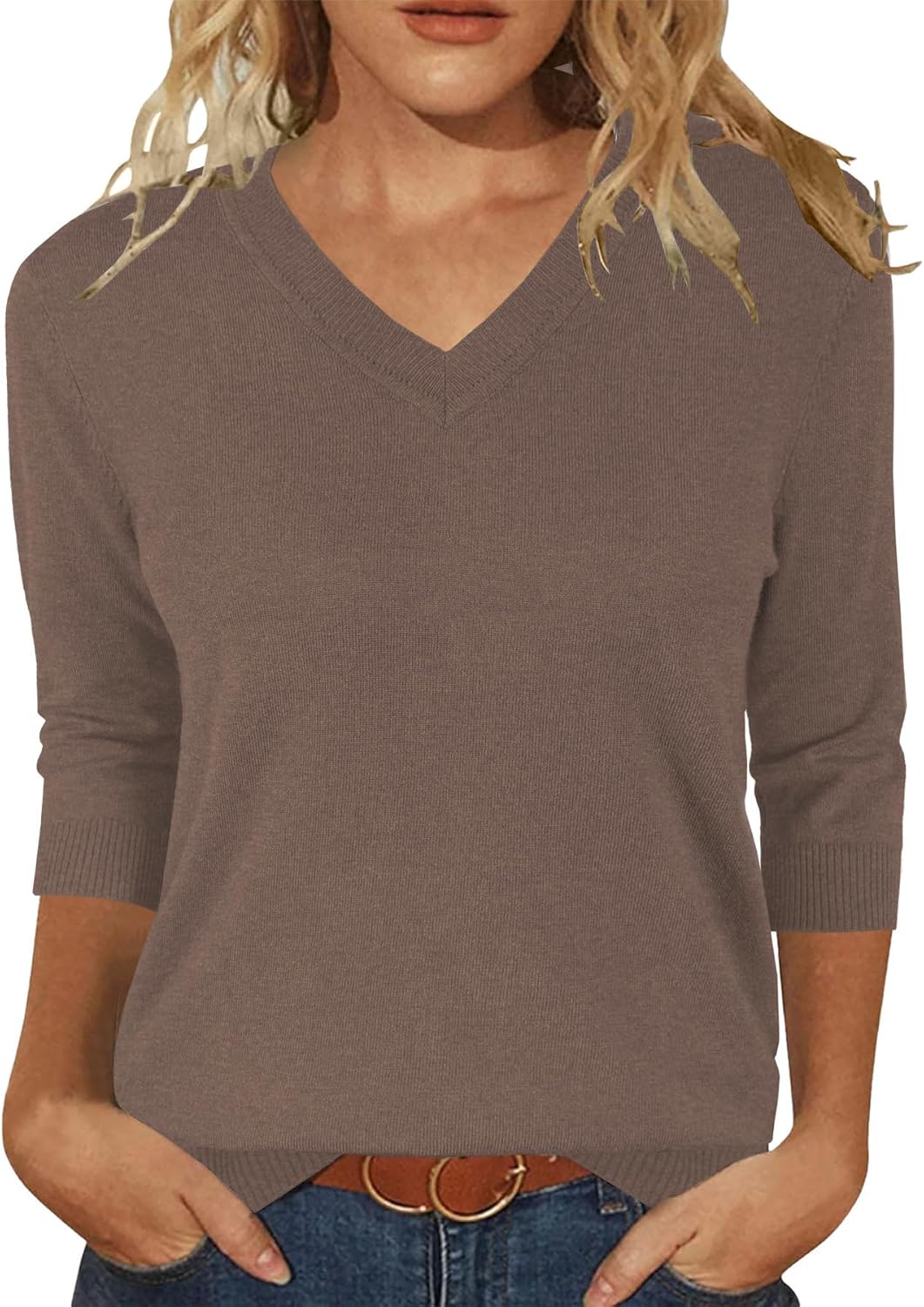 JomeDesign Womens Sweaters 3/4 Sleeve Pullover Tops V Neck Blouses Business Casual Fashion Clothes