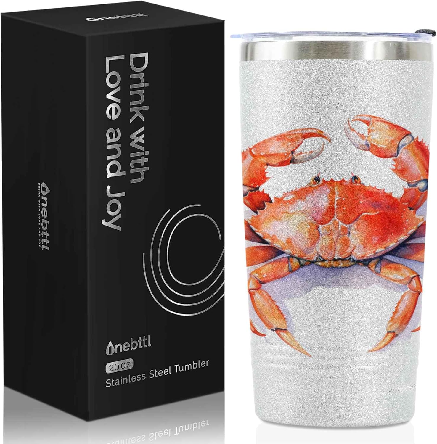 Onebttl Crab Gifts for Crab Lovers for Women & Girls, 20oz Stainless Steel Tumbler with Lid, Perfect for Birthday & Christmas, Glitter