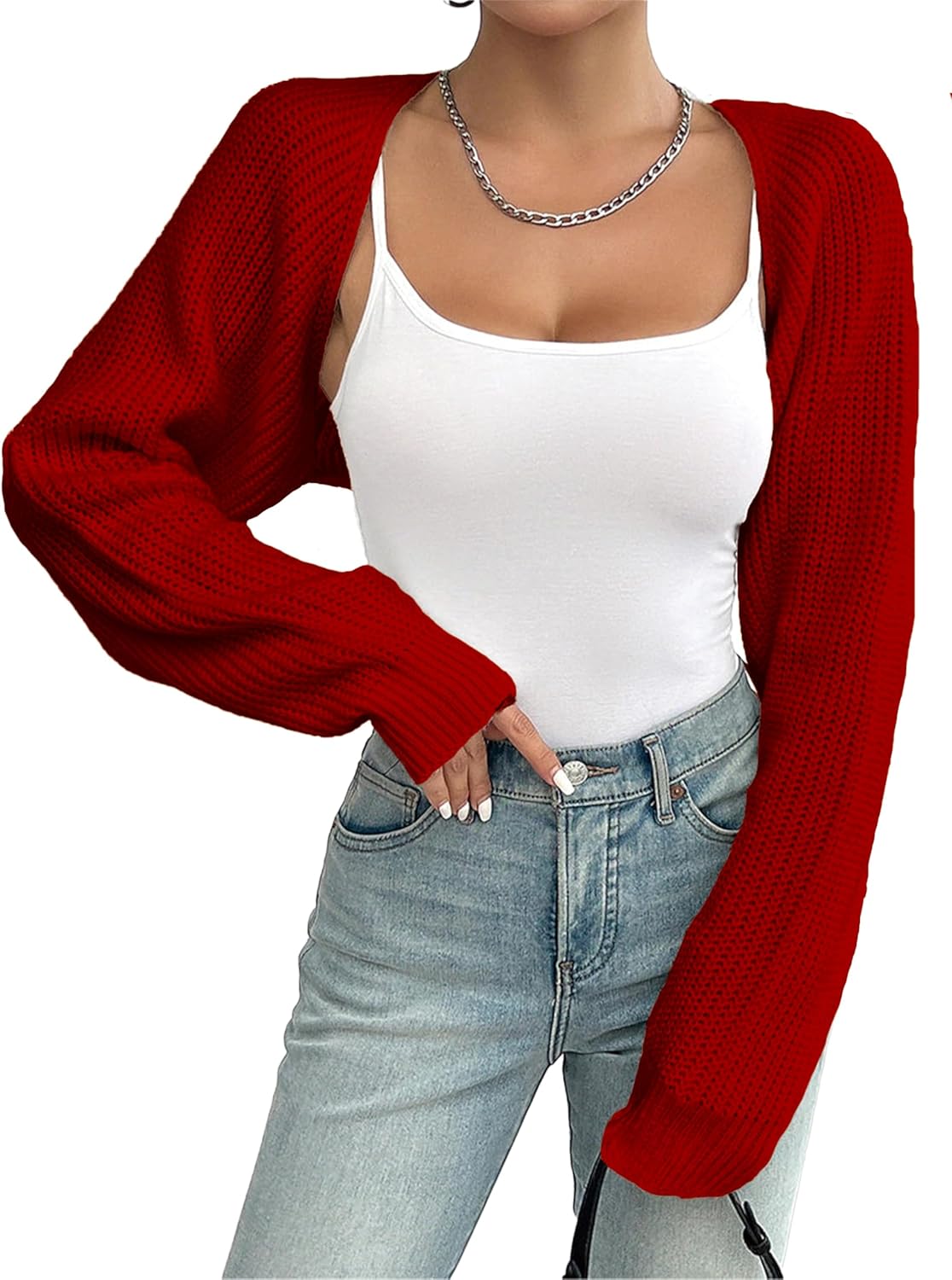 Women's Bolero Shrug Sweater Rib Knitted Long Sleeve Open Front Cropped Cardigan Y2K Tops