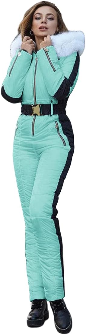 Yousify Womens Snow Suits Winter Ski Suit Onesie Outdoor Sports Waterproof Snowsuit Removable Faux Fur Collar Coat Jumpsuit
