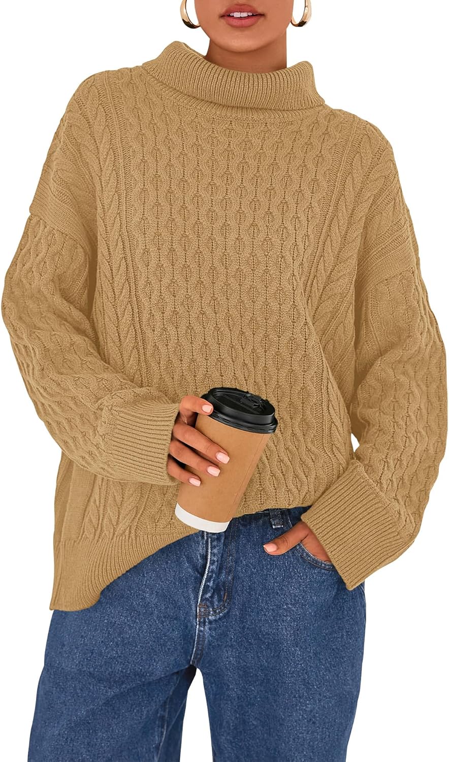 BTFBM Casual Women Fall Sweaters 2025 Long Sleeve Turtleneck Ribbed Knit Pullover Loose Cable Knit Sweater