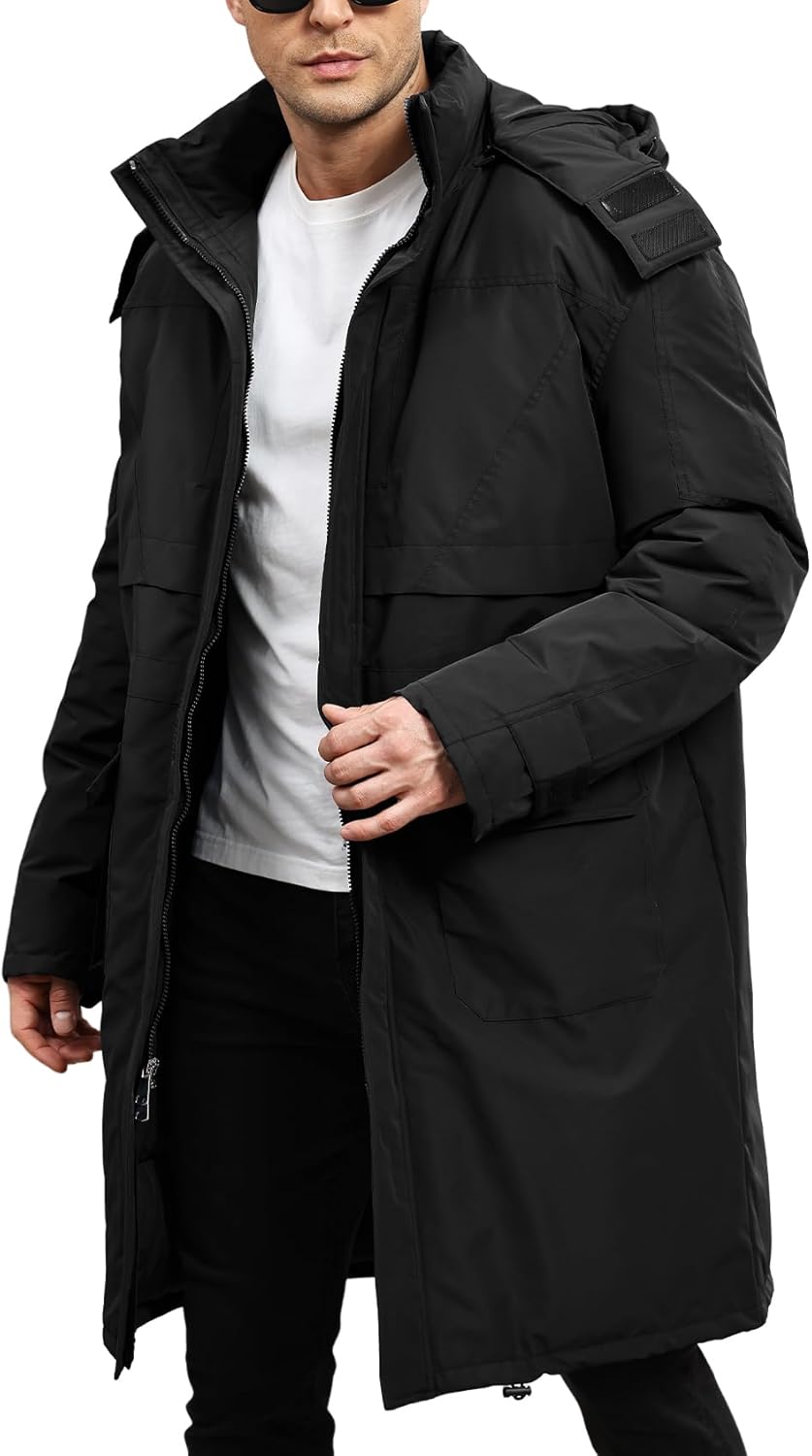 Yimoon Mens Long Parka Winter Coats Water-Resistant Warm Thicken Hooded Puffer Jacket Heavy Padded Windbreaker Outerwear(Black-XL)
