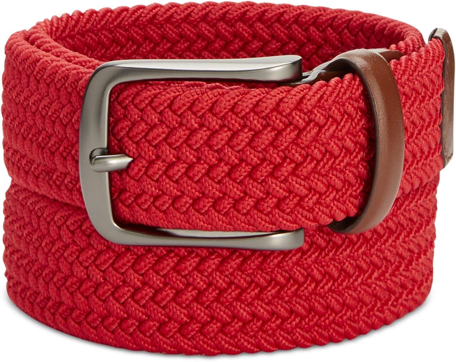 Perry Ellis Mens Webbed Woven Belt, Red, Small