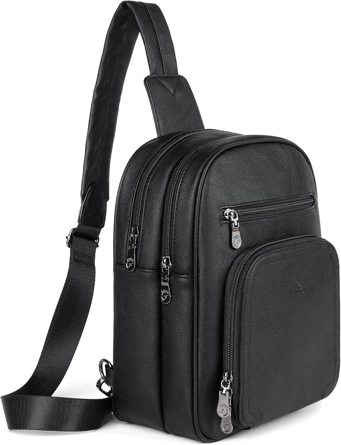 - Easy to use: The strap of this leather sling bag is adjustable (25-57 inches) and can be reversible from side to side, allowing multiple ways to carry to suit your needs. You can use it as a crossbody bag, sling bag, shoulder bag, fanny pack, chest bag, travel backpack. This womens sling bags is perfect for a day of shopping, dating, workout, vacations, walking, travel, parties or anytime you don't want to carry a larger handbag, which is easy to carry and hands-free.