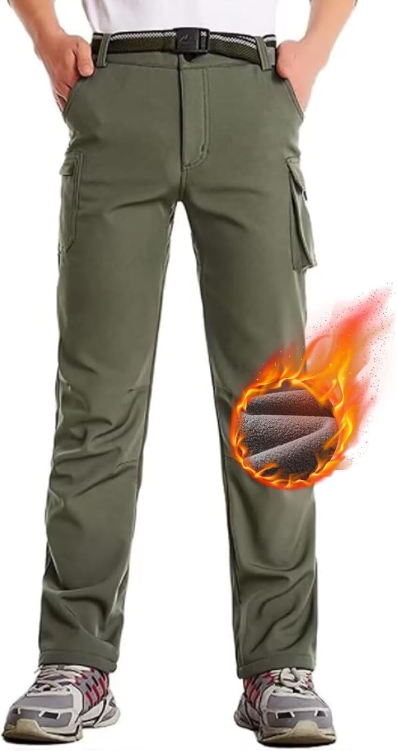 Boys Hiking Pants Waterproof, Fleece Lined Snow Pants Kids Tactical Cargo Pants, Rain Hunting Pants Youth