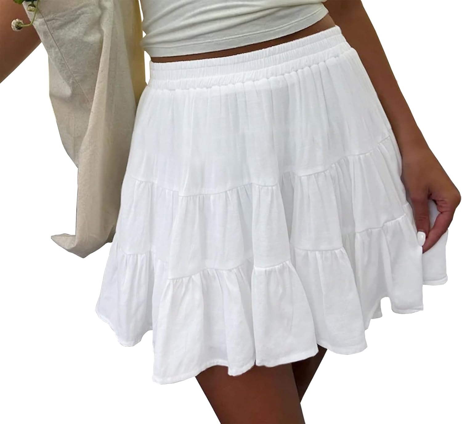 Tsher Women's High Elastic Waist Ruffle Casual Boho A-line Mini Skirts 0328