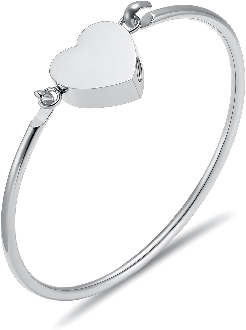 Cremation Urn Bracelet for Ashes Stainless Steel Heart Urn Bracelet Bangle Cremation Memorial Keepsake Jewelry for Loved One