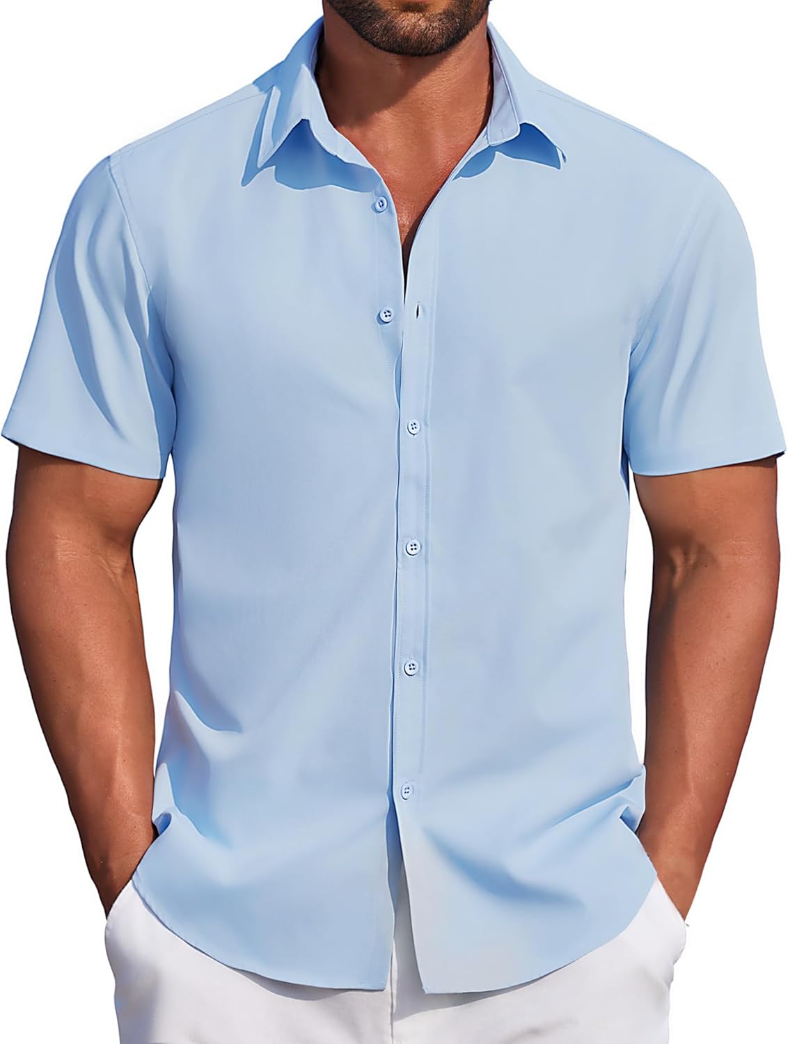COOFANDY Men's Casual Short Sleeve Button Down Shirts Untucked Dress Shirts Wrinkle Free Summer Wedding Shirts Solid